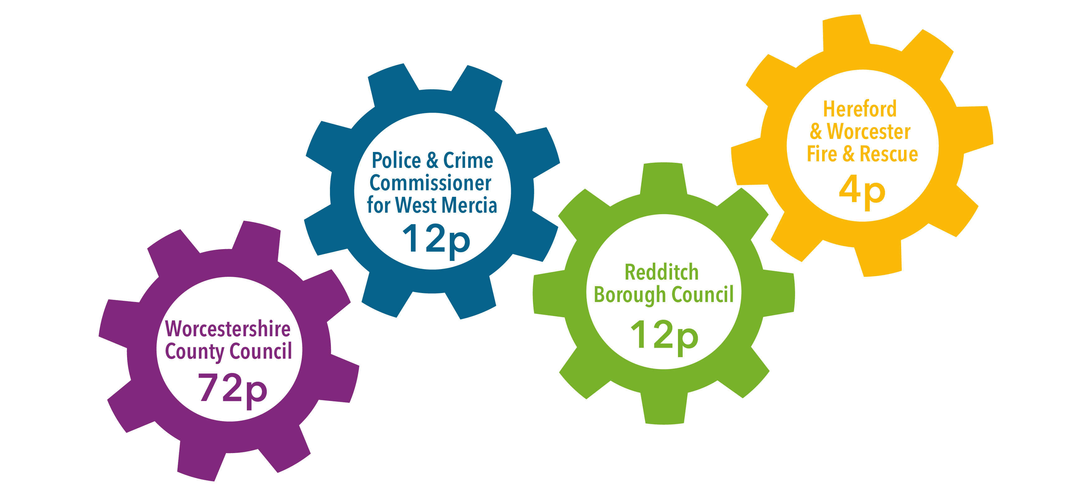 For every pound you pay broken down - (WCC - 72p, PCC - 12p, RBC - 12p, HW F&R - 4p